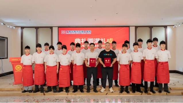 当灶台的烟火气遇上毕业季的蝉鸣,一场关于技能传承与职业启航的盛宴拉开帷幕。2025 年 6 月 10 日,广西华南烹饪技工学校与广州九毛九餐饮连锁有限公司联合举办的产教融合定向班毕业典礼隆重举行,校企双方代表、定