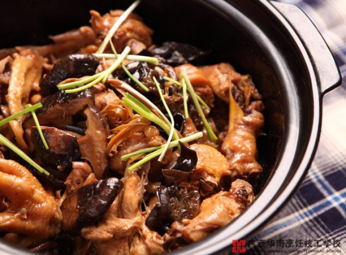 食材:鸡肉、冬菇、木耳、针菜、