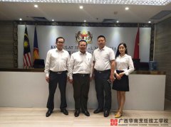 5月7日上午,我校校长翟维铁一行人访问马来西亚驻南宁总领事馆,得到总领事馆总领事黄奕瑞先生亲切接见。副校长赵志权,教师庞丽萍一同前往。 左一赵校长,左二黄奕瑞总领事,右二翟校长,右一庞老师 我校代表向总领