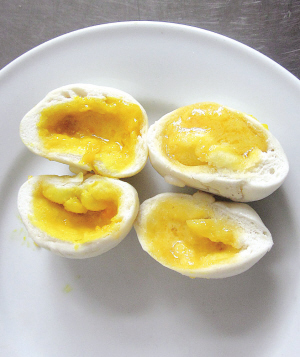好的流沙包对咸蛋黄的质量要求较高,必须要正确的腌制手法和足够的腌制时间,蛋黄才会分成一层层,并会有丰富的黄油,这样的蛋黄做出来的流沙包,才会在口中有沙粒摩擦的感觉,像流沙一样。