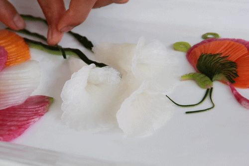 拼盘考试的内容是自选,时间是90分钟,同学们用写意和写实的手法将水果组合、拼排成各种图形,有“迎客松”,“步步高升”,“蝶恋花”等,形态逼真,色彩艳丽,刀工精湛。其中由黄领组拼的“蝶恋花”造型独特、构思巧妙、成为这次拼盘考试优秀作品之一。
