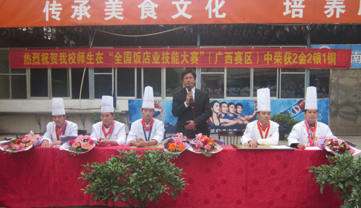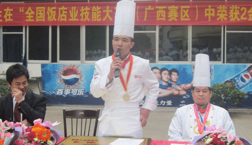 在12月17日的全国饭店技能大赛(广西赛区)上,我校荣获2金2银1铜的优异成绩。12月21日上午9点。获奖选手来到我校明秀校区做汇报演讲。