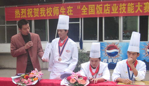 带领此次参赛的朱伟老师首先跟大家谈论了此次比赛的经过,他说:在比赛现场看到多名从华南走出的优秀毕业学子能代表各大企业出赛,他非常的开心,同时也希望在校的同学们能像他们学习,为自己的未来做好充分的准备。随后,获得本次大赛雕刻项目组金奖的杨罗银老师、获热菜项目组银奖的黄盛老师、冷拼项目组的银奖和铜奖的我校学生黄文康、卢保潮分别在会上做了总结,并发表了获奖感言。
