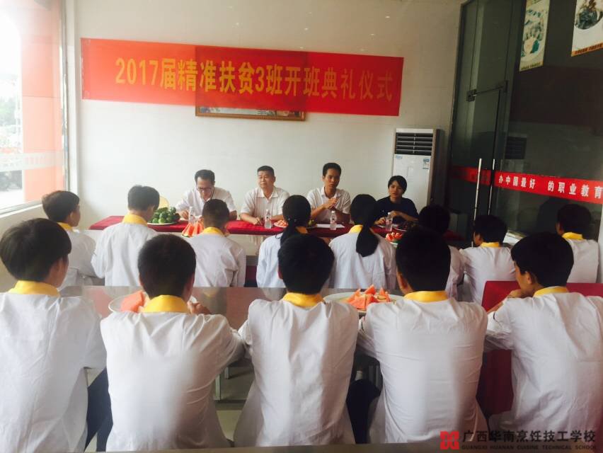 广西华南烹饪技工学校为了确保学员毕业后顺利就业,保证就业后达到脱贫标准,因此将学员单独成班,以确保通过培训使学员学到基本的职业技能 、职业素质 、职业素养,并通过职业技能考试能够上岗,实现学员及家庭生活条件发生根本性转变。
