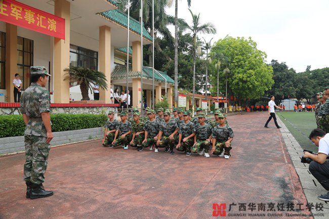 8月17日下午三点,广西华南烹饪技工学校2018年秋季新生军训会操表演在中尧校区操场上举行。