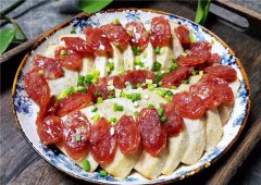 香芋 1个 广式腊肠 2条 葱花 适量 油 适量 盐 适量 酱油 适量 糖 适量 胡椒粉 适量 鸡粉 少许 1.芋头一个。 2.广式腊肠两条,小葱适量。 3.芋头切成厚块。 4.放盐、油、酱油、胡椒粉、鸡粉、糖拌匀。 5.拌匀后摆入盘