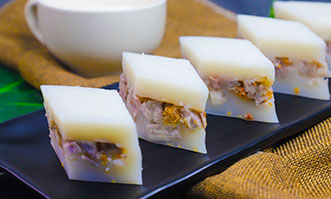 芝麻球、桂花糕、五香芋头糕、三丝炸春卷、农家鸡蛋挞、香滑马蹄糕等。